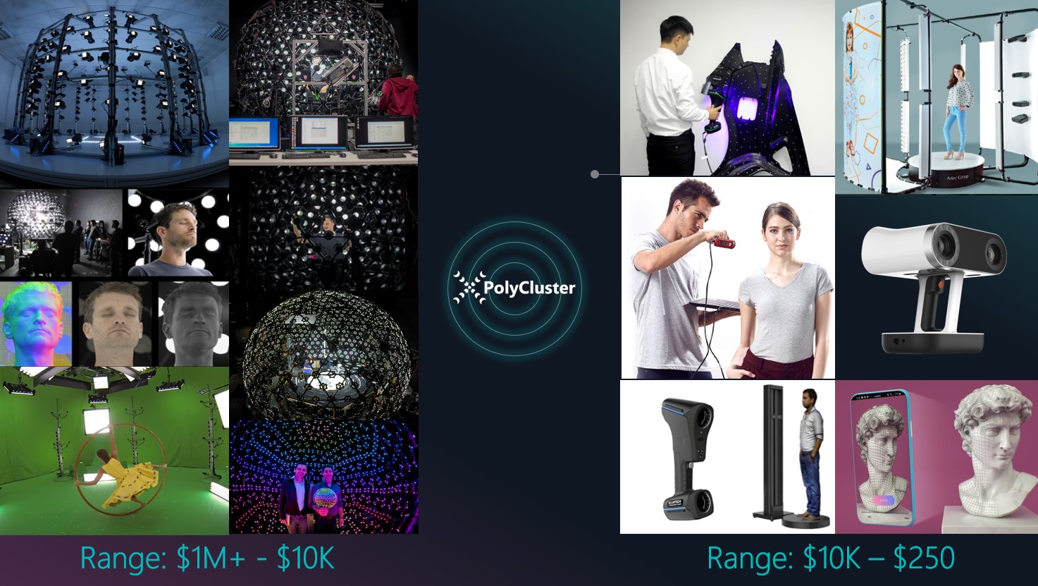 On one side complex and expensive devices used on industrial settings or in high budgeted productions. On the other, devices that you move around the scanned subject while the model is still… try to scan your son or pet with this…